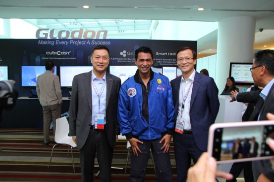 广联达高级副总裁云浪生(右)、马来西亚第一位宇航员穆扎法尔·舒库尔博士(中)和广联达高级副总裁刘谦先生(左)