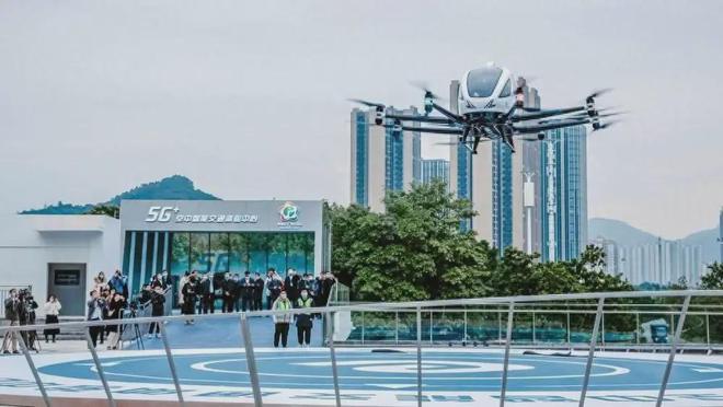 2023年,亿航智能自主研发的EH216-S无人驾驶载人航空器在广州起飞。