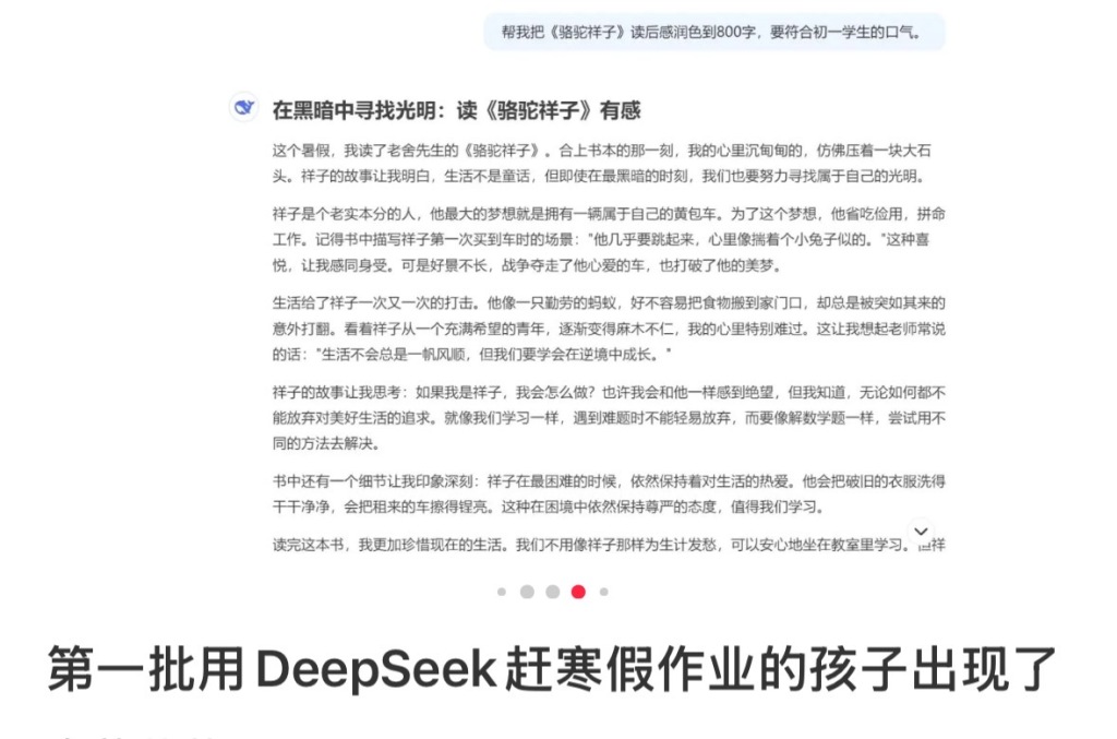 澎湃新闻(www.thepaper.cn)记者注意到,开学前几天是疯狂的补作业日,网上有人发帖称今年出现了孩子用DeepSeek等人工智能应用赶作业。