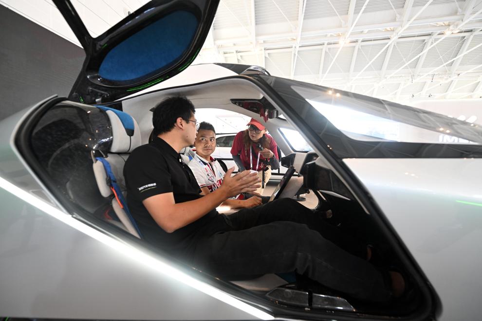 新华社天津6月21日电(记者王宁、宋瑞)20日在天津开幕的2024世界智能产业博览会上,一台外观酷似汽车座舱设计、搭配多旋翼的飞行器,停放在智能网联汽车展区小鹏汇天展台,引得许多观众驻足参观体验。