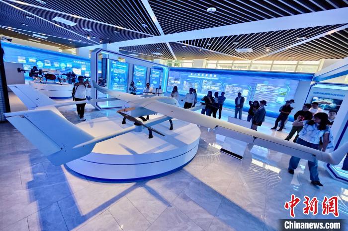 11月12日,福建省福州市高新区“榕创汇”无人机(系统)孵化器里的各种低空应用型无人机吸引了许多人的目光。随着低空经济蓬勃发展,福州高新区大力发展无人机产业,已经引进蜂巢航宇、穿越医疗、福州中岳航空、空间矩阵、自由飞跃、迅蚁科技等无人机研发企业,产业链上下游企业配套完善。图为具备挂载能力可垂直起降的固定翼无人机。中新社记者 王东明 摄