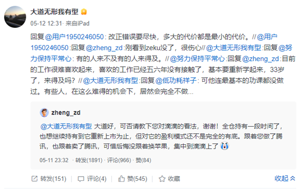 5月16日,又有网友向段永平提问,如何看待OPPO关闭哲库业务。