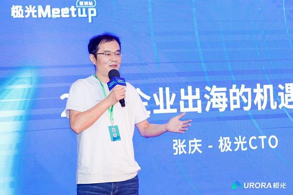活动首先由极光CTO张庆进行开场演讲,他分享了当前AI技术快速发展下企业全球化的趋势,并就企业在出海过程中可能面临的文化差异和基础设施建设等问题展开细致说明。