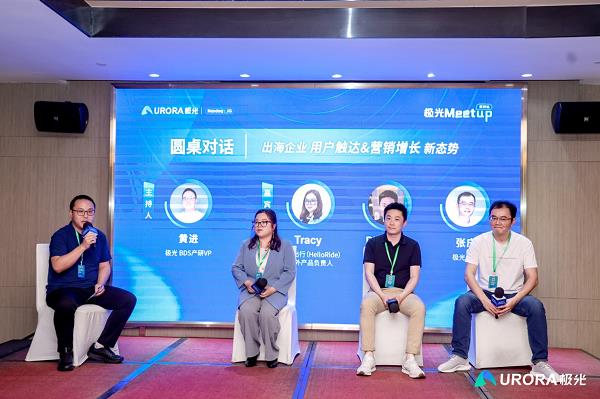 接着,由极光BDS产研VP黄进主持的圆桌讨论汇集了哈啰出行(HelloRide)海外产品负责人Tracy、Super8 CTO Bill Wang以及极光CTO张庆等嘉宾。他们就“企业如何触达海外目标客户以及在海外如何合规“等关键问题展开了深入讨论。