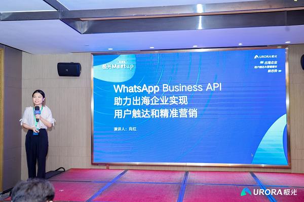 最后,极光产品经理向红的演讲《WhatsApp Business API助力出海企业实现用户触达和精准营销》也引起了与会者的高度关注。她介绍了“使用 WhatsApp在海外市场进行拉新获客、 OTP安全验证、通知提醒、客服沟通和私域营销的价值,以及极光作为 WhatsApp官方 BSP 的服务可靠性。”
