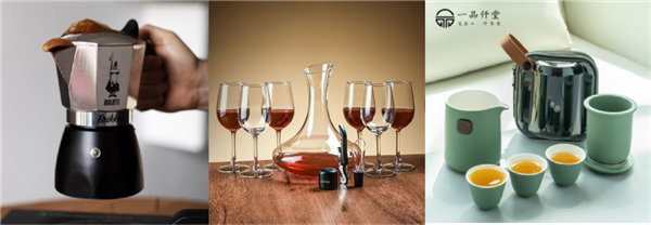 小家扩容,除不断向内的空间扩容外,还是功能扩容、氛围扩容,通过开发新角落让小家也能享受无限自由。618期间,京东贴合时下消费者的流行生活方式,联合品牌共建咖啡新角落、微醺小酒馆、居家露营角等场景,并奉上咖啡具、酒具、便携茶具等品类好物,精细化满足消费者的居家功能升级需求。比如,比乐蒂双阀手冲摩卡咖啡壶,更大压力萃取,让人在家也能品味到更醇正香浓的咖啡;CLITON轻奢酒具套装,内含红酒杯、醒酒器、海马刀、倒酒器、红酒塞等,一套配齐微醺小酒馆全套工具。此外,万仟堂大吉大利快客杯、一品仟堂便携式旅行茶具套装等在手,足不出户就能拥有户外精致露营的体验。