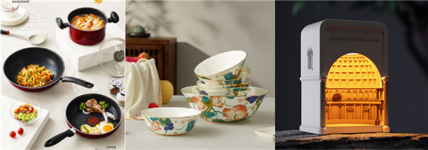 除空间升级需求外,在与家的朝夕相处中,消费者对家的颜值、氛围也提出了更高标准的要求,希望家成为“私人美术馆”。对此,618期间,京东携手品牌打造治愈系厨房、生活仪式感两大细分场景,同步带来高颜值锅具、餐具以及氛围感十足的香薰、摆件等,供消费者尽情选购。如,中国红的苏泊尔不粘锅三件套、网红牛油果绿的爱仕达晶石不粘奶锅、缤纷配色的Staub珐琅锅、国潮设计的永丰源幸福和鸣碗碟套装等,为消费者带来从厨房到餐桌的愉悦视觉享受。此外,Jupiter & Venus万神殿无火香薰蜡烛、可米生活白夜童话艺术摆件,拉满家的艺术氛围。