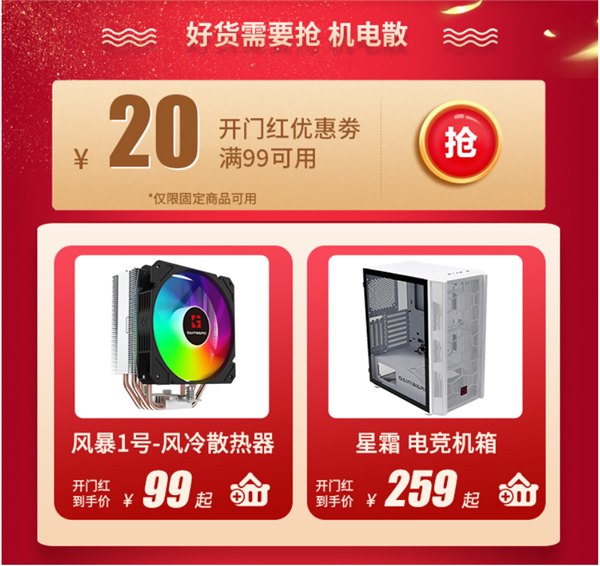 618活动期间,购买耕升旗下的散热以及电竞机箱,可销售满99-20的开门红优惠卷,性价比和实用性拉满的电脑配件,赶快前往选购吧!