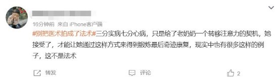 当然也有人表示显示在生活中也有三分实病七分心病的例子,转移注意力然后通过锻炼后康复也不是法术。
